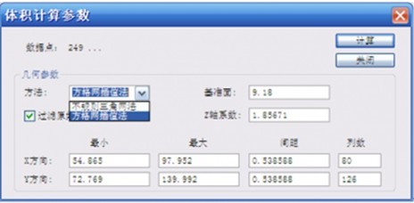 方量常用算法:有不规则三角网法、方格网插值法,一般选用方格网法进行方量计算。
