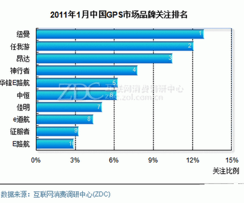 (图) 2011年1月中国GPS市场品牌关注排名