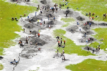 (图)2月28日,在新西兰南岛克赖斯特彻奇,人们清理地表淤泥。克赖斯特彻奇当地时间2月22日发生里氏6.3级地震,目前已确认有148人遇难,搜救工作仍在继续。