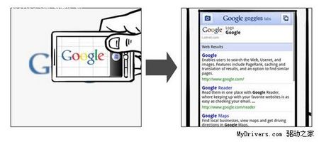 Google Goggles是一款Android平台软件,Android手机用户登录软件商店即可下载。在该软件中,用手机摄像头拍摄当地地标建筑、书籍封面、艺术作品、酒类标签以及产品商标,即可立即获得相关信息。拍摄名片能够记录所有信息,直接拨打电话或加入通讯录。对于商业网点的识别,则连拍照都省略了,采用类似“增强现实”技术的方式,将摄像头指向该店铺,Android系统即可利用GPS、电子罗盘信息,给出该店铺名称和更多信息。Google还表示,未来会给Goggles增加更多识别能力,比如识别植物等。