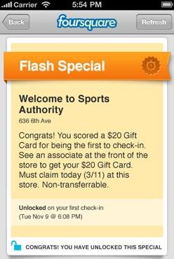 至于如何获得优惠,方法还是照旧:用户去他们喜欢的地方签到,但优惠活动需要对签到进行位置验证。而且很明显,你必须到相应的店铺中给工作人员展示手机屏幕上的优惠券,才能获得优惠。(Kathy)