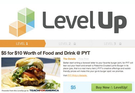 上周SCVNGR网站推出了一个名为LevelUp(thelevelup.com)的服务,它把位置游戏中的用户保持机制(retention mechanics)跟Groupon这类网站提供的大幅优惠结合到一起。