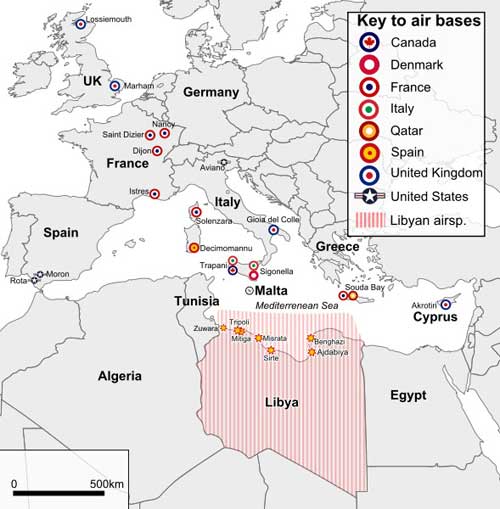 打击利比亚的各国军事基地大多分布在利比亚附近,从地理位置上讲占据了有利的位置。