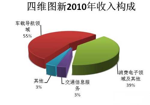 以下图示是2010年两家公司的收入结构构成:从中可以看出,四维图新的收入结构明显优于高德,其收入构成已经从以前的车载导航为主,逐步优化为车载导航和消费电子(手机和PND)相互呼应的格局;高德软件在车载导航上的收入占比太高,抗风险能力弱于四维图新。