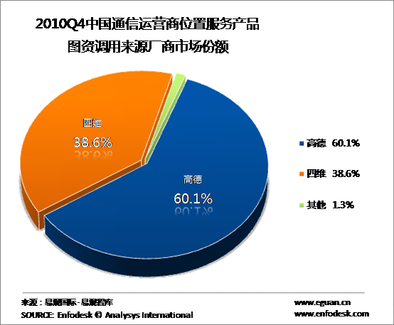 另外通过对于中国通信运营商位置服务市场的进一步研究发现,运营商的位置服务应用的图资调用源集中度较高,主要集中在高德及四维图新两个厂商中。