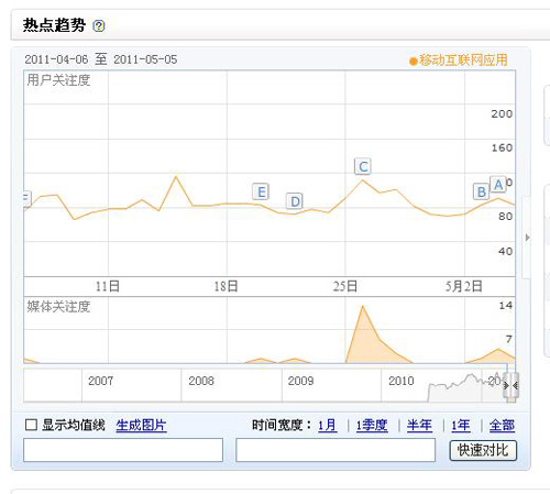 根据百度指数分析移动互联网发展趋势和移动互联网的应用如图