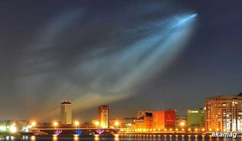 北极光是一种自然光,经常出现在北极地区,是由带电粒子撞击地球磁场形成的。然而,叶卡特琳堡与英国格拉斯哥处于同一纬度,它的位置太靠南,根本不会出现北极光,因此火箭发光可能是这一现象的最佳解释。一些事先不知道这次火箭发射的居民认为,他们看到了外星飞船。2005年"联盟-FG"(Soyuz-Fregat)运载火箭发射时,喷出的尾气被阳光照亮,也产生了非常壮观的光影展。