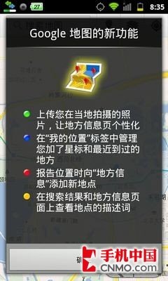 在几项更新中,上传照片功能是比较有意思的,用户可以自行上传某地的照片,在通过谷歌审核之后就可以在地方信息页看到。此功能近似于谷歌的街景地图,不过内容是有用户上传,而不是谷歌官方。