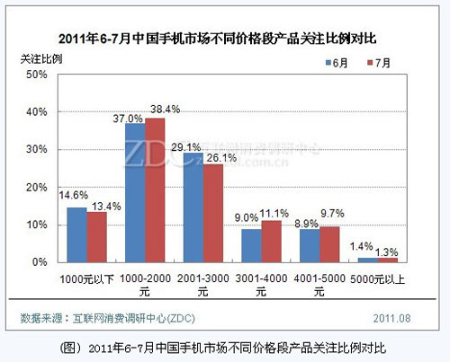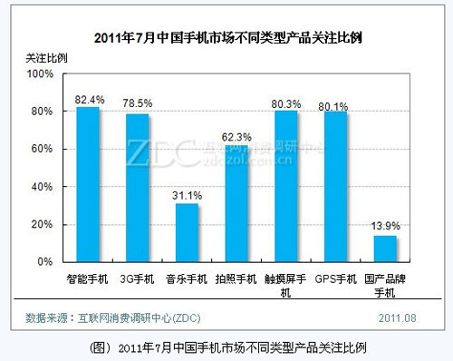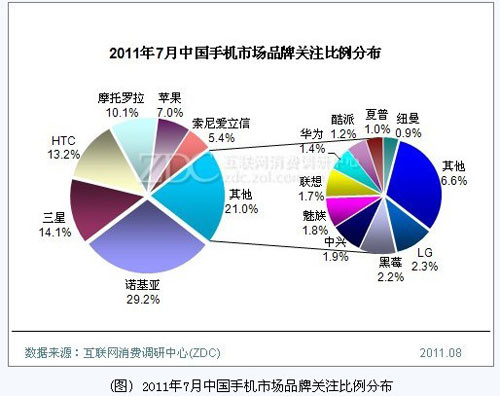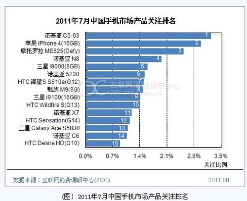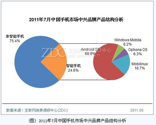 ZDC统计数据显示,2011年7月中国手机市场上: