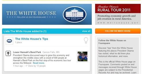 据国外媒体报道,白宫博客宣布,美国总统奥巴马将在中西部地区进行竞选巡游时使用LBS服务Foursquare签到。业界人士表示,鉴于奥巴马以前就使用过Facebook和Twitter,此举并不令人感到意外。想关注奥巴马的用户可以看看白宫的Foursquare页面(https://foursquare.com/whitehouse)。