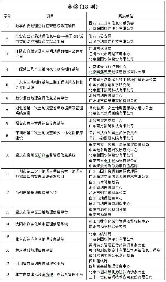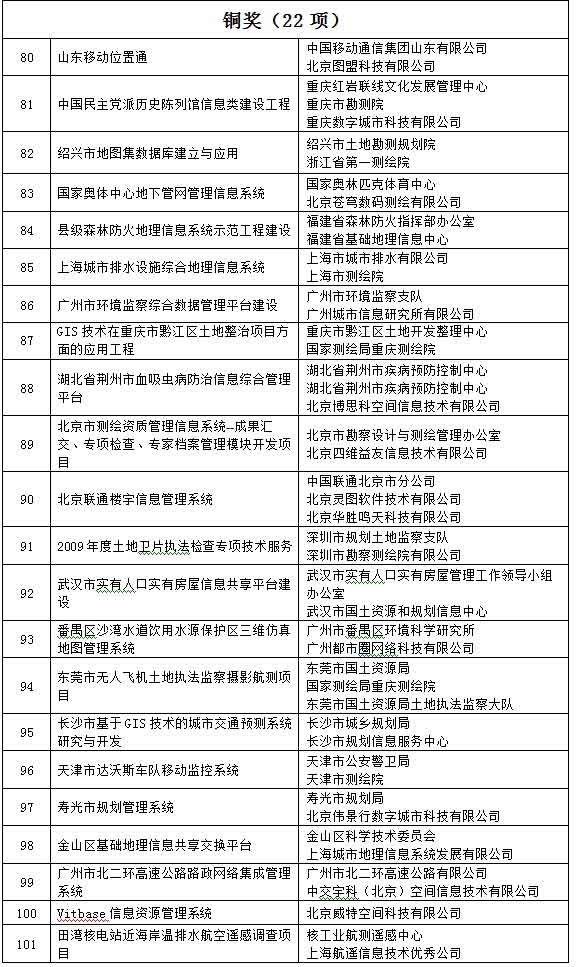 中国地理信息产业协会9月9日公布了2011年中国地理信息优秀工程奖名单进行公示,公示期从9月9日至9月23日。