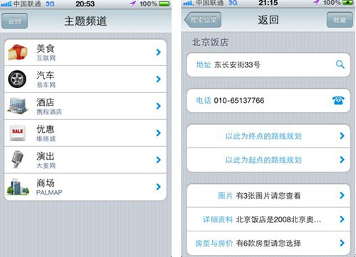 目前,高德地图开通了6大主题频道:美食、汽车、酒店、优惠、演出和商场,为用户提供各种生活服务的深度信息查询,包括商家地址、电话、图片、产品介绍、价格等,都是用户随行所需非常实用的讯息。其内置的“拨打电话”服务,可以让用户直接打电话给商家进行预订、查询,或通过路径规划测算距离、前往目的地。这些贴心的功能融合在一起,也是根据实实在在的用户需求,吸引果粉不容忽视的一点。