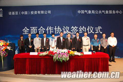 9月15日,诺基亚与中国气象局公共气象服务中心在中国气象局举行全面合作协议签约仪式,共同开展手机气象服务合作,为诺基亚用户免费提供全方位的气象灾害预警及气象服务信息。