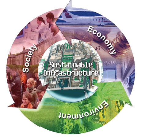 可持续使用的基础设施与社会、经济、环境的关系图 (3sNews配图)