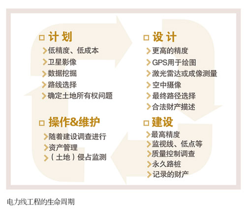 Merrick & Co公司通过其产品展示了,地理空间技术是如何在电力线项目的整个生命周期的每个阶段发挥促进作用,并证明了在项目实施的各个阶段里,尤其是后期的持续运营和维护阶段,这两个阶段在运用地理空间技术后的工作效率有所提高,这对于确保电力能源的持续供给是非常重要的。