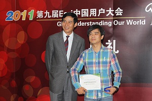 3sNews讯 9月28日消息, “2011年第九届Esri中国用户大会” 颁奖仪式今天上午在北京国际会议中心三层举行,”颁奖典礼上,Esri中国(北京)有限公司总裁何宁、副总裁王宝光、王昊、蔡晓兵出席颁奖仪式,分别为获奖代表颁奖。