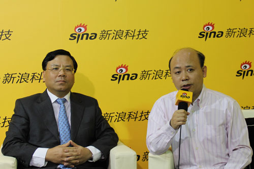 中国电信上海公司总经理张维华(左)和新浪科技主持人康钊(右)
