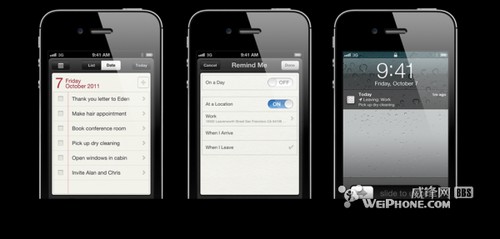 此外,在前几天的“Let’s talk iPhone”发布会上,Scott Forstall为大家现场演示了如何利用iPhone 4S的Siri助理来实现语音添加Reminders提醒事项,其中也用到了基于地理位置的提醒选项。