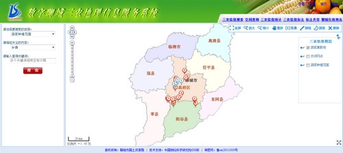 三农服务系统具备三农信息搜索、空间查询、三农信息统计、三农信息标注、标注共享、聊城行政地名等功能,形成了一套“以图分析”的三农信息应用系统。据于志刚副主任介绍,该系统可以实现在地图上标注、发布蔬菜种植信息,方便农户向外界传递信息;而蔬菜收购者通过该系统也可以查询蔬菜种植范围、蔬菜集散地等信息,可以获得蔬菜种植的种类、面积大小以及集散点联系人详细信息等资讯,同时还可以对相关信息进行柱状或饼图形式的直观统计。由此,该系统搭建起了农户和收购者之间的桥梁,方便了农产品的外销,提高了农产品的价值,增加了农民的收入。