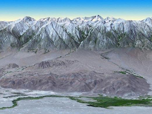 这幅3D数字地图采用的是安装在美国宇航局Terra卫星上的日本高级热辐射和反热辐射仪器(ASTER)所收集的数据。Terra卫星是美国宇航局地球观测系统计划的一部分,其主要任务是获取地球表面的温度、反射性、高度起伏形貌等数据,此外还可侦测到可见光、近红外光、短波红外光和热红外光等。作为一种球形数字高程模型,这幅地图是根据立体图像对(stereo pair)制造出来的;也就是说,将很多个细小的二维图片合并成以制造出三维立体深度效果。