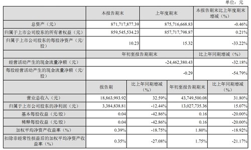 3sNews讯 10月21日,北京数字政通科技股份有限公司(以下简称“公司”)发布2011年第三季度季报。截止报告期末公司实现营业收入4374.95万元,较去年同期增长31.80%,其中报告期内实现营业收入总额为1886.40万元,较去年同期增长32.59% ;截止报告期末,公司实现归属于上市公司股东的净利润总额为1302.77万元,比去年同期增加15.07%。其中报告期内实现归属于上市公司股东的净利润为338.48万元,比去年同期减少12.44%。