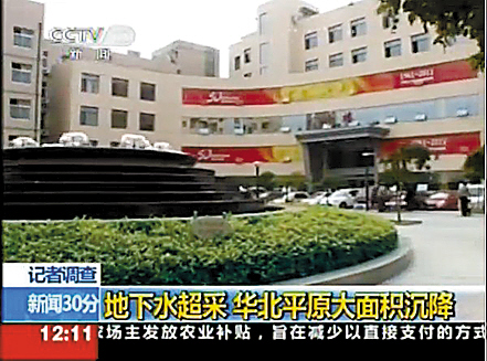 河北省沧州市人民医院原来三层楼的病房由于地面沉降,逐渐变成两层,2009年不得不拆除建成喷泉