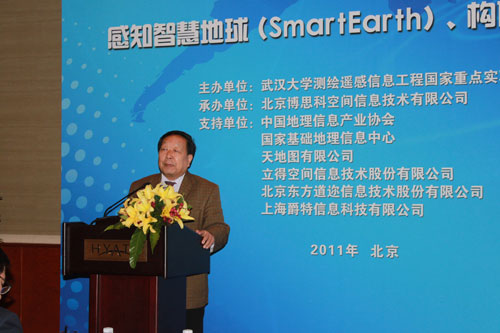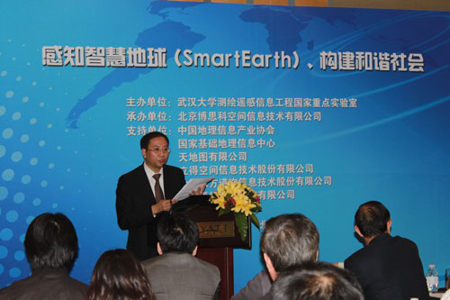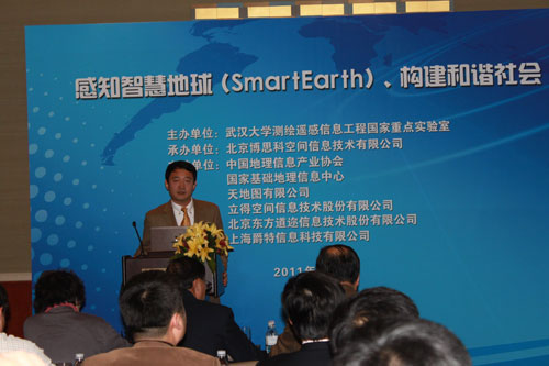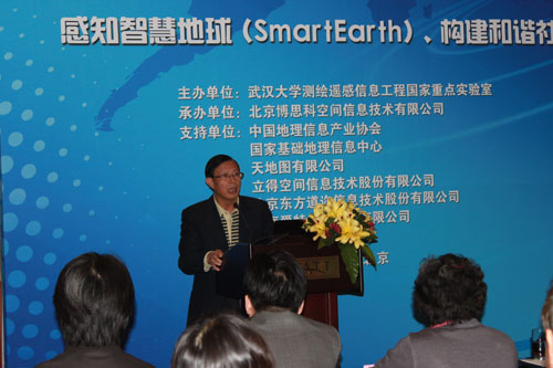 3sNews讯 2011年10月30日,感知智慧地球高端研讨会在北京东方广场君悦大酒店隆重召开,本次研讨会由武汉大学测绘遥感信息工程国家重点实验室主办、北京博思科空间信息技术有限公司承办,以“感知智慧地球(Smart Earth)、构建和谐社会”为主题。中国地理信息产业协会常务副会长丛远东先生到会致词。中国科学院、中国工程院李德仁院士发表主题演讲。来自民政部、水利部、国土资源部、中科院、地震局、测绘局以及著名大学和业内企业的高端人士、在京部分日本企业和协会等负责人约50余名出席了研讨会。3sNews作为媒体代表也出席了本次研讨会。