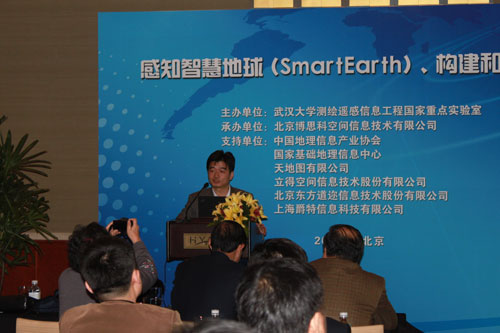 中国地理信息产业协会常务副会长丛远东先生在与会致词中指出,地理信息产业今年年底年产值将达到1500亿,以每年50%的速度增长。刚刚结束的地理信息产业大会上的招聘会为大学生提供了近7000个就业岗位,地理信息产业的爆发式增长带动了股市的上涨,具有无限的广阔前景。同时,丛副会长感慨,感知智慧地球高端研讨会此时召开恰逢其时,希望人们用智慧和理智保护地球。