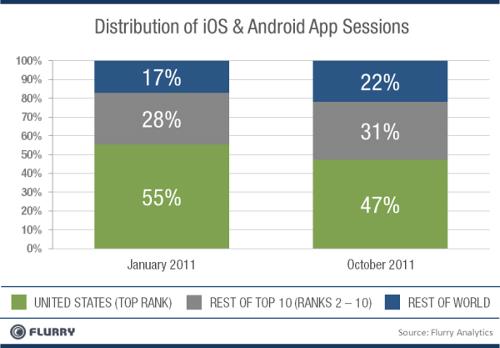 据TechCrunch网站报道,中国拥有世界上最多的手机用户,而根据移动应用分析公司Flurry的调查,中国手机用户对移动应用的使用达到前所末有的程度。今年1月至10月,Flurry调查了12万个移动应用的“对话(session,指使用情况)”,发现有10个国家移动应用的使用增长最快。