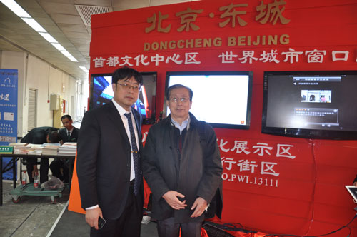 经纬融通总经理张林与朱毅麟院士(右)在文博会现场(3sNews 摄影)