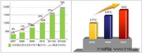 2010年全球3G及更先进技术的用户量达到10.26亿,其中移动互联网用户量为8.6亿左右;在手机用户中,智能终端的普及率达到19%。而在中国,2010年中国手机网民的数量为3.03亿,而到2011年的6月份,这个数字增加到了3.18亿。这些都构成了移动互联网发展的用户基础。