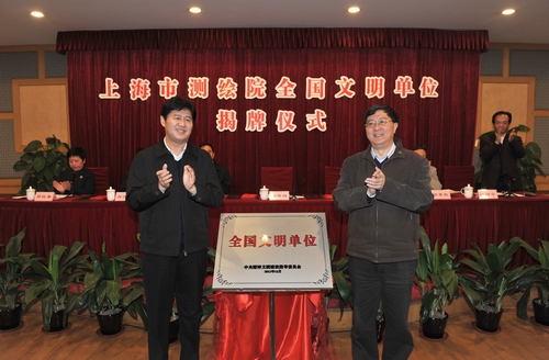 12月27日上午,上海市测绘院举行全国文明单位揭牌仪式。国家测绘地理信息局党组书记、局长徐德明,上海市文明办主任陈振民共同为市测绘院“全国文明单位”揭牌。12月20日,全国精神文明建设工作表彰大会在北京举行。中央精神文明建设指导委员会公布了第三批全国文明城市(区)、文明村镇、文明单位名单。授予长沙市等27个城市(区)全国文明城市(区)称号、北京市朝阳区高碑店乡高碑店村等899个村镇全国文明村镇称号、首都博物馆等1794个单位全国文明单位称号。上海市测绘院荣获“全国文明单位”称号,成为全国测绘地理信息系统和上海市规划国土资源系统获得该荣誉称号的首家单位。