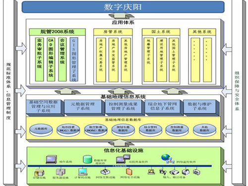 该系统旨在利用先进的3S(地理信息系统GIS 、遥感RS、全球定位系统GPS)技术、海量数据库存储技术及计算机网络技术,建立庆阳市多数据源、多比例尺、多时态、多种数据格式的基础地理信息数据库(基础地形数据、正射影像数据、DEM数据等)及其它相关专题数据库,实现城市基础地理信息数据的动态更新、集成管理、共享交换机制,为庆阳市各行业提供及时、适用、可靠的基础地理信息支持与服务,促进城市信息化和城市建设的可持续发展。
