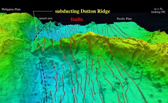 这些海脊是在已有1.8亿岁的太平洋板块与更年轻的菲律宾板块相互碰撞过程中形成的。加德纳称,由于海洋地壳会随着年龄的增加而降温,“太平洋地壳更年长,因此它正慢慢下沉到菲律宾板块下”。当太平洋板块上的海山被拖到菲律宾板块下面时(这一过程又称潜没),它们就会紧紧抵住海沟的沟壁,形成这些海脊。据加德纳猜测,这些桥梁涉及到地震俯冲带,例如造成2011年3月日本大地震的一个这种俯冲带。他说:“这是一种极其复杂的地况。这些海山死死抵住板块。”