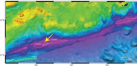 科学家还利用多束回声测深仪测量了地球最深处挑战者深渊(Challenger Deep),精确度比以往任何时候都更高。研究人员从2010年8月到10月间一直利用船侧扫描仪测绘整个马里亚纳海沟的地形结构,在此期间发现4座横跨该海沟的桥梁。这些桥梁比它下面的海床高2500米。虽然卫星图曾指出,可能有这样一座海脊横跨在马里亚纳海沟上方,但是加德纳表示,测绘任务证实这里存在4个这样的构造。他说:“这一发现令我激动不已。”