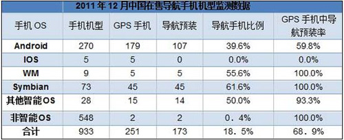 1、主流平台的GPS渗透率决定着手机导航的发展方向。随着Android和IOS等终端的爆发式增长,由2009年之前以Symbian、WM及Brew为主的市场竞争格局,进入了Android和IOS携手领跑的智能导航时代。因市场热点的转移,其他智能机特别是非智能机迅速从主流手机导航厂商的预装和适配计划中消失。