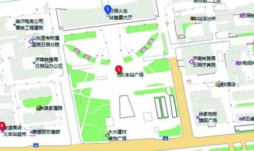 地图上日照火车站附近的各种地理信息非常齐全