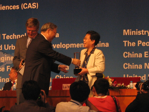 图为为数字地球科技贡献奖陈述彭教授颁奖(代领)