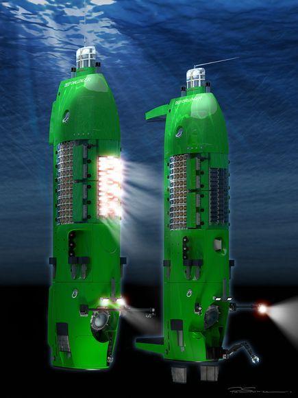 在卡梅隆的下潜之旅开始之前,他的小组还计划首先释放一个无人的深海“着陆器”下降到这片洋底先行去探路。这套无人深潜器外星活像一座苗条的电话亭,长度约4米,装备有摄像设备。它将携带鱼饵抵达海地去吸引海底的生物们前来,进入一个塑料圆筒中,这个圆筒可以由海面的工作人员回收。