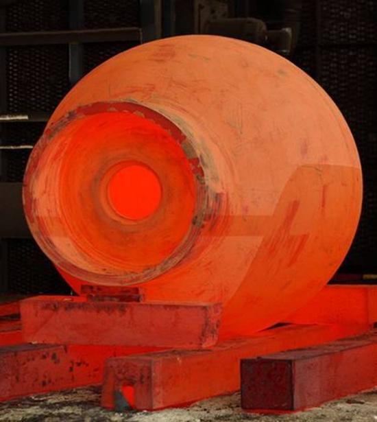 这是一个球形钢制的驾驶员舱,其小小的圆形窗户正开启着,由于钢铁还是炙热的,因此它通体发着红光。