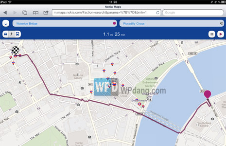 现在Nokia Maps网页版支持自驾导航、公共交通换乘指引、步行导航,和Google Maps功能接近。同时,网页版还支持语音导航,但需要提前下载一个2MB容量的音频包,导航语音包括“左转,右转”这样简单的方向指示,并且语音导航目前仅支持步行模式。地图图层方面,网页版提供了带公共交通枢纽标注的地图模式、卫星模式和实时交通拥堵状态模式。目前看来,网页版Nokia Maps的分辨率还不是特别高,但流畅度非常好,体验达到原生APP标准。