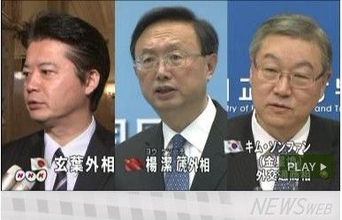 据日本媒体消息称,中日韩3国外长将于4月举行磋商,讨论朝鲜发射人造卫星等问题。有预测称,三国将共同要求朝方保持克制。