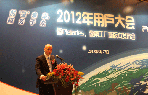 3sNews讯 北京视宝2012年用户大会暨Pleiades、像素工厂新品发布会于3月27日在北京新世纪日航饭店隆重举行,Astrium Geo集团公司负责人及其在华子公司北京视宝公司相关负责人出席了发布会。此外,国家测绘地理信息局副局长李朋德到场并作了发言。此次用户大会注册人数达四五百人,吸引了专家、企业等众多业内人士的参与。