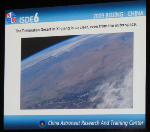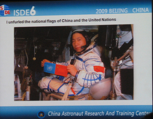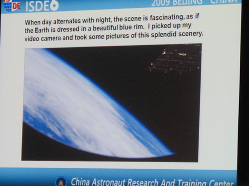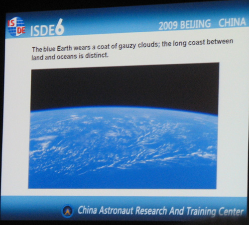 我国航天员杨利伟在大会上发表报告《从太空观察地球--一个航天员眼中的地球》。报告中杨利伟讲述了中国飞天事业的发展,并展示了他在太空中拍摄的地球照片。他说,在飞行过程中,他拍下了非常珍贵的录像和照片,他非常想成为一个诗人去描述这种太空的美丽和无垠的寂静。