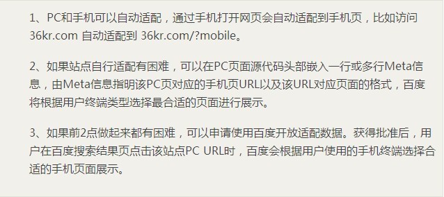 为此百度官方也给出了一些手机站点做SEO的指导,称做好下面三件事中的任意一件,你的手机网站流量将获得稳步提升: