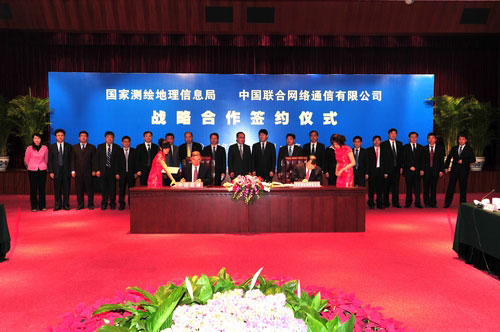 国家测绘地理信息局与中国联通签署战略合作协议(图片来源:国家测绘地理信息局)
