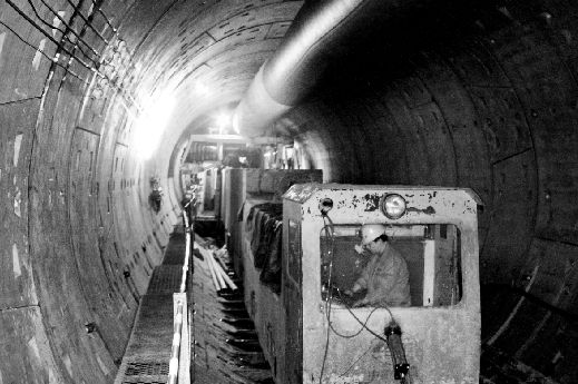 与此同时,每掘进1.5米,工人们就赶紧铺渣土运输车的铁轨,隧道完工后,这些铁轨全被拆除,被真正的地铁列车铁轨取代。