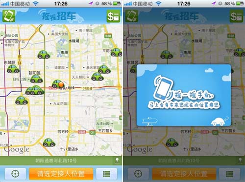“摇摇招车”基本上可以看成是中国版的Uber,不过和Uber所使用的私家车不一样,摇摇招车使用的是自有租车公司下的空置车辆(目前只在北京地区运营,约70辆),而且在费用上也能做到与一般的出租车持平。