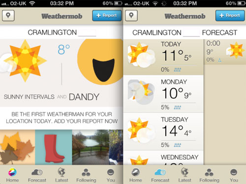 通过一个免费的iOS应用,Weathermob允许任何人成为天气预报员。这款应用融合了实时气象数据、照片、视频和分享功能,让用户可以报告并分享其所在地的天气情况。自去年11月推出以来,它已拥有来自128个国家的数百万用户。