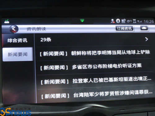 相信很多朋友在开车时有听新闻的习惯,IVoka在远端服务器中,储存了信息量庞大的新闻节目库,如果想听新闻,只要激活方向盘上的语音通话快捷键,告诉IVoka“我想看新闻”,新闻栏目就自动打开,自动播放滚动新闻内容。让人眼前一亮的是,IVoka的电子语音播放声音接近真人播报新闻的声音,十分逼真、有条理,一点也不生涩。当然如果想听广播电台的话,只要知会一声IVoka“我要听广播”,广播节目也会自动打开。